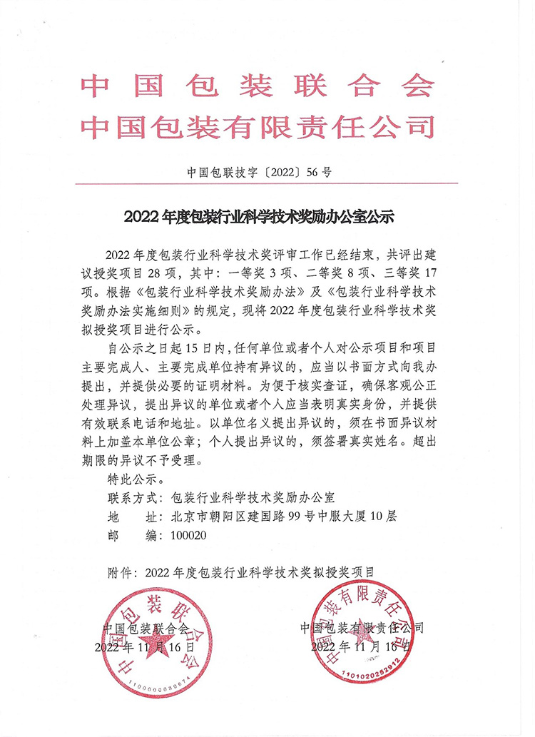 “包裝行業科學技術獎”是經國家科學技術部核準登記,由中國包裝聯合會和中國包裝有限責任公司聯合設立的全國性行業獎,該獎項是國內包裝行業最具影響力的獎項之一。近年來,院校和科研機構參與度逐年遞增,行業內企業對科技獎的整體重視程度逐年增強,使得項目總體水平和整體質量不斷提升,獲獎難度也大幅增加。